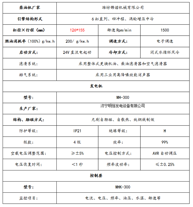 300KW濰柴斯太爾系列柴油發(fā)電機組技術(shù)參數